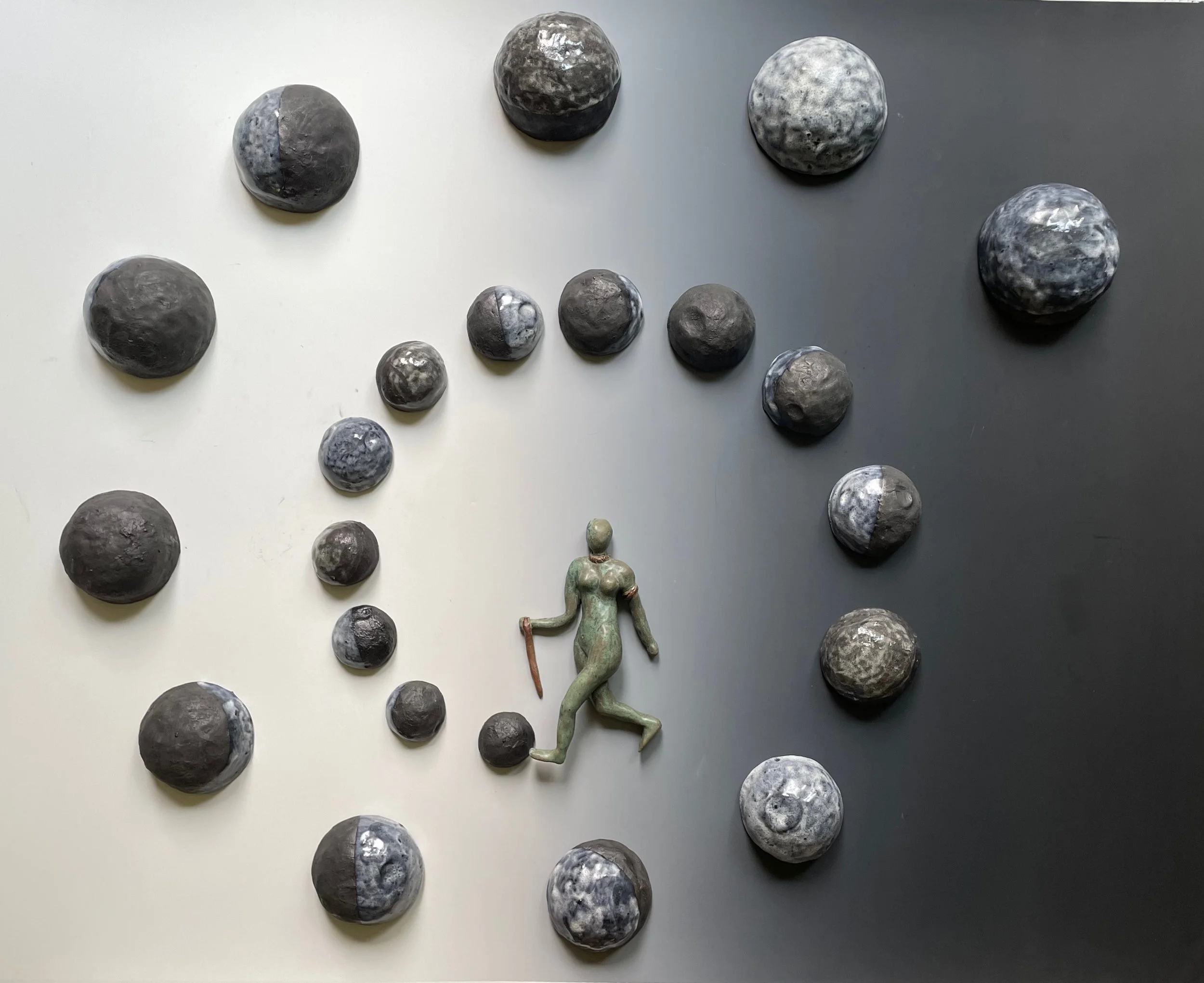 In 1989, I picked up The Motherpeace Tarot Deck. I had no idea that moment would plant the seed for a creative and spiritual journey spanning decades. Tarot became a mirror—not for predicting the future, but for reflecting the soul. In 2021, I had a vision: What if I brought the Major Arcana to life in sculpture? This exhibition is the result of that leap into the unknown—The Fool’s Journey. It’s been a path of exploration, challenge, and transformation, expressed through stone, ceramics, wire, felt, and more. Each sculpture reflects not only the card’s archetypal meaning, but the lived experience of creation itself. This journey has taught me presence, patience, humility and trust. This is not a typical art show. It is a meditative experience, a sacred invitation to turn inward. Walk slowly. Let the work speak. You don’t need to “know” Tarot. Just listen. May you find something in this space that reflects your own path.