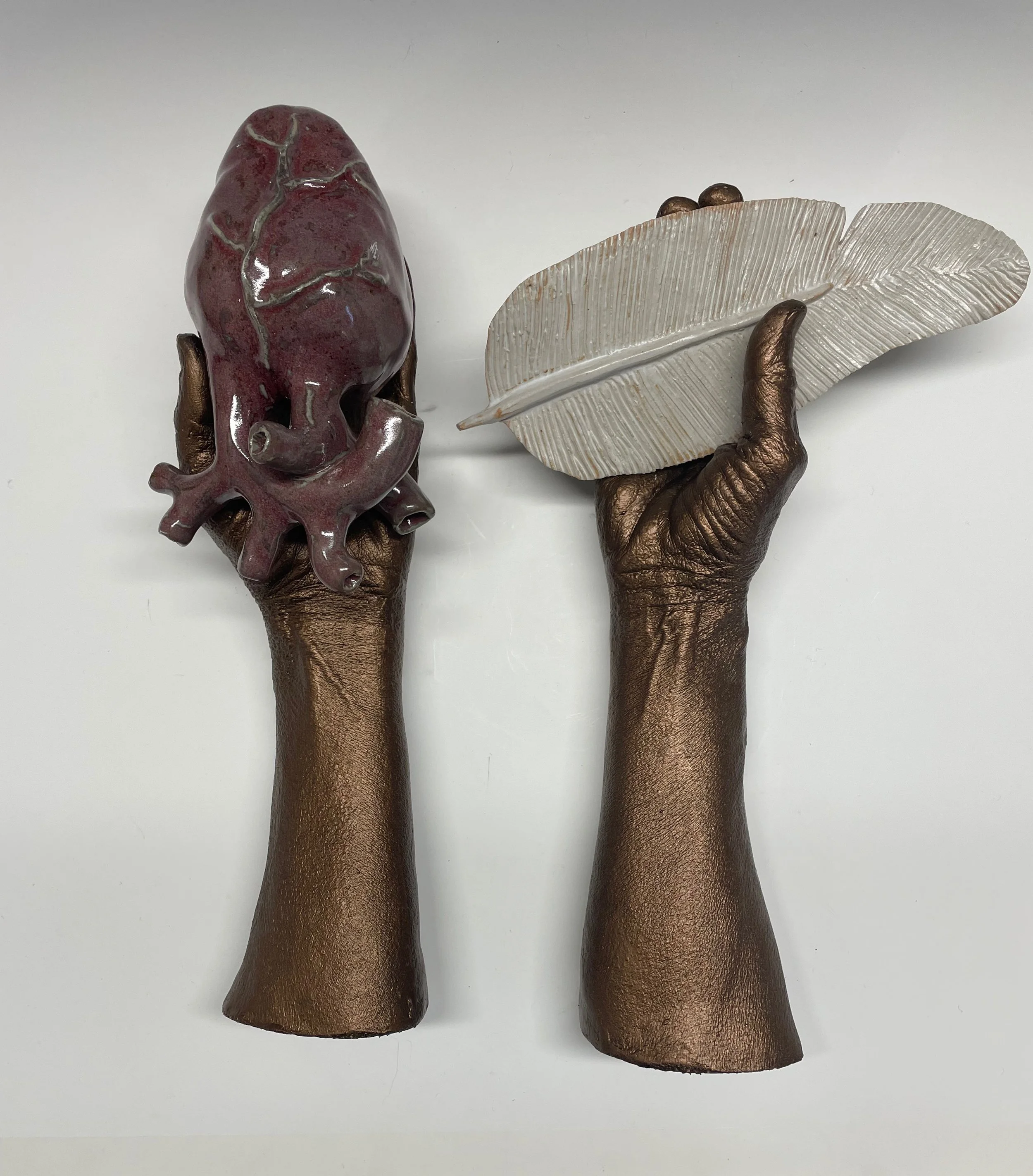 Here, the sculpture evokes the ritual of the afterlife—where the heart of the deceased is weighed against a feather from the wing of Isis, goddess of Justice. Outstretched arms offer both heart and feather to the cosmic scale, asking: Did this soul live in truth? May they pass into the afterworld?